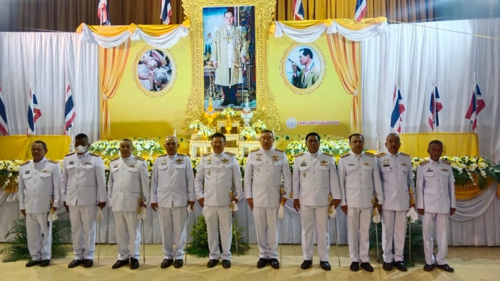 วันที่ ๕ ธันวาคม ๒๕๖๗ เวลา ๐๗.๐๐ น. พ.ต.อ.ณัฏฐ์เดชา ฐานิสภัทราพงศ์ ผกก.สภ.โรงช้าง พร้อมข้าราชการตำรวจ สภ.โรงช้าง เจ้าหน้าที่ฝ่ายปกครอง กำนัน ผู้ใหญ่บ้าน องค์กรปกครองส่วนท้องถิ่น และประชาชนจิตอาสาร่วมพิธี ทำบุญตักบาตร พิธีวางพานพุ่มดอกไม้ ถวายเป็นพระราชกุศลเนื่องในวันคล้ายวันพระบรมราชสมภพพระบาทสมเด็จพระบรมชนกาธิเบศ มหาภูมิพลอดุลยเดชมหาราช บรมนาถบพิตร และวันพ่อแห่งชาติ ๕ ธันวาคม ๒๕๖๗ โดยมีนายสิรศักดิ์ ทัศยาพันธ์ นายอำเภอมหาราช เป็นประธานในพีธี พิธีตักบาตรข้าวสารอาหารแห้งแด่พระภิกษุสงฆ์