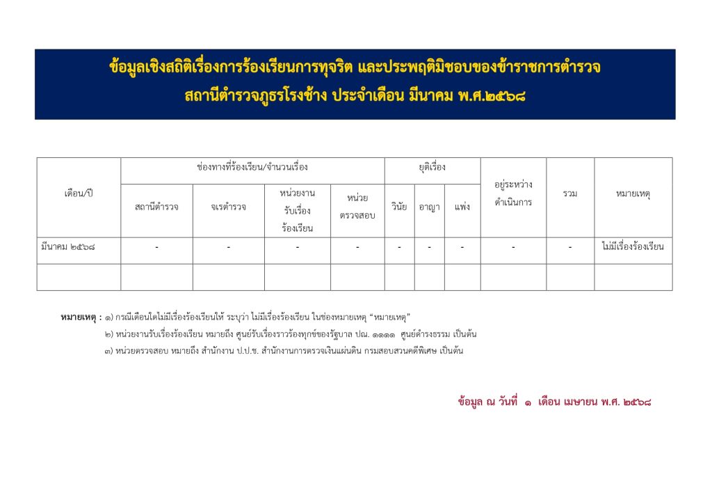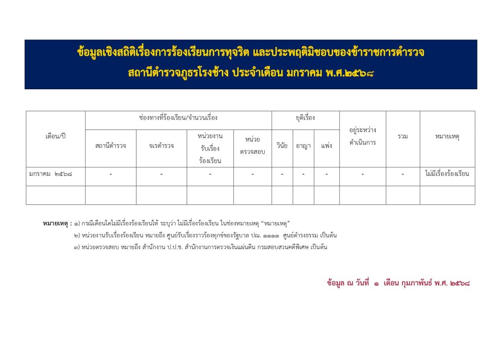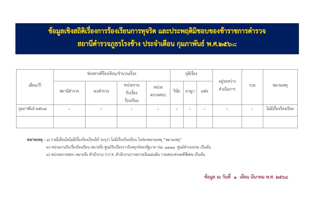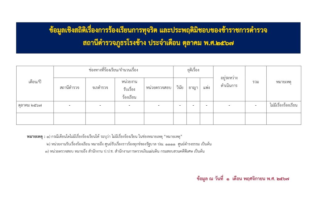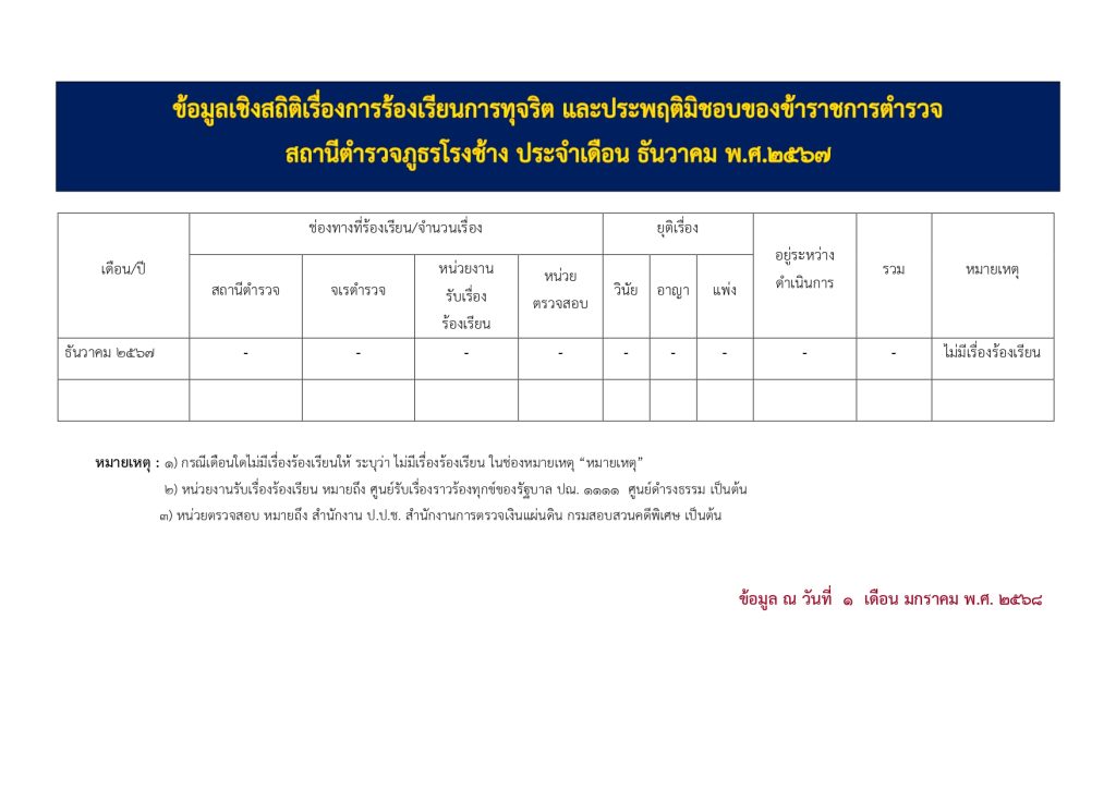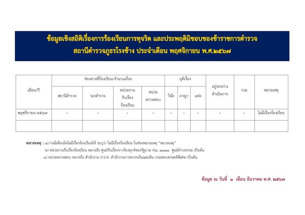 ข้อมูลสถิติเรื่องร้องเรียนการทุจริตและประพฤติมิชอบของเจ้าหน้าที่ของสถานีตำรวจภูธรโรงช้าง