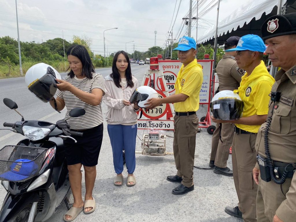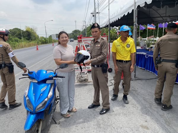พร้อมแจกหมวกนิรภัยเพื่อความปลอดภัยของประชาชนที่สัญจร ในช่วงเทศกาลสงกรานต์ ประจำปี 2568