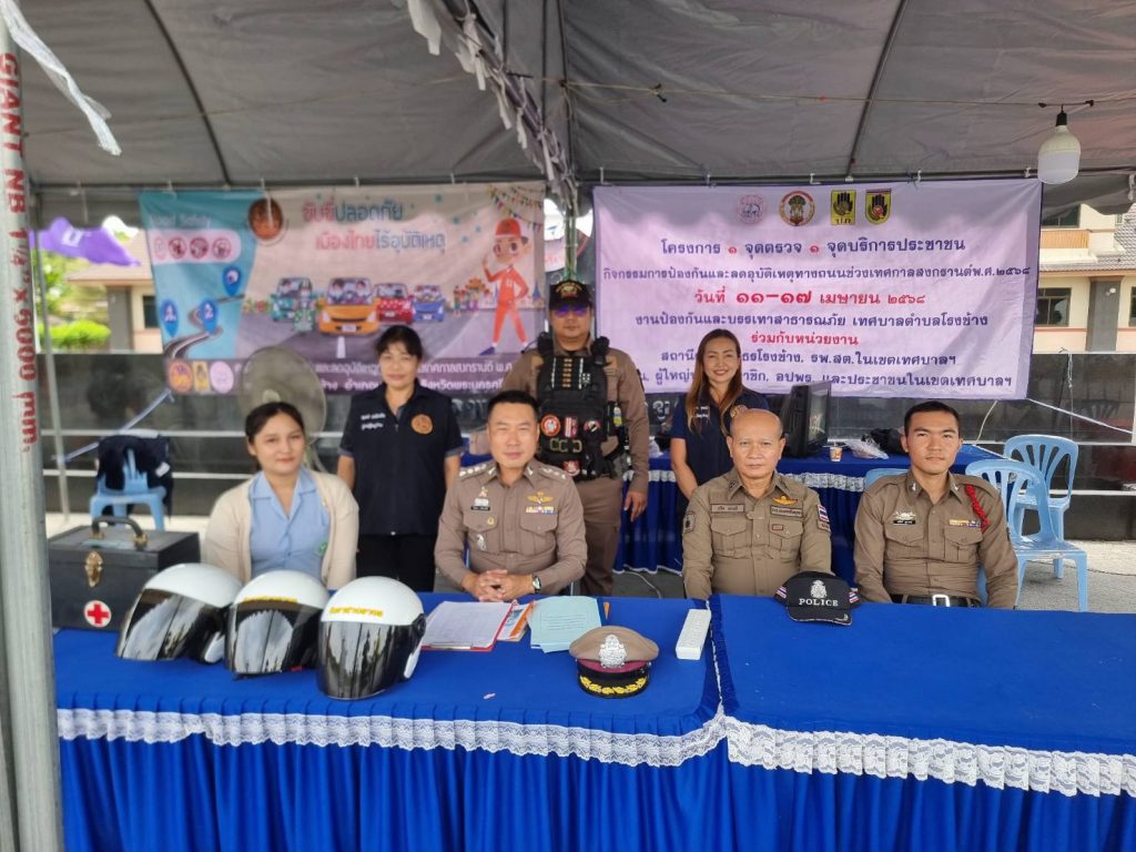 วันที่( 12เม.ย.68 ) เวลา 13.30 น. พ.ต.อ.ธีรยุทธ เสรีนนท์ชัย ผกก.สภ.โรงช้าง พ.ต.ท.ภูวดล ศูนย์แสง รอง ผกก.ป. สภ.โรงช้าง พ.ต.ท.ประยูร เข็มณรงค์ สวป. สภ.โรงช้าง พร้อมกำลังเจ้าหน้าที่ตำรวจจราจร และจิตอาสา ดำเนินโครงการจิตอาสาจราจร รณรงค์การขับขี่ปลอดภัยสวมหมวกนิรภัยเพื่อลดอุบัติเหตุจราจรทางบกพร้อมให้การอบรมวินัยจราจร บริเวณจุดบริการประชาชนหน้าเทศกาลตำบลโรงช้าง