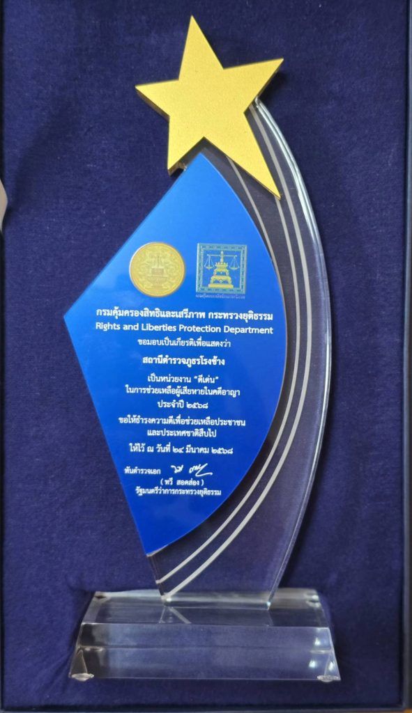 วันที่ 24 มีนาคม 2568 พ.ต.อ.ธีรยุทธ เสรีนนท์ชัย ผกก.สภ.โรงช้าง ในนาม สภ.โรงช้าง เข้ารับโล่เกียรติคุณในฐานะสถานีตำรวจภูธร (ส่วนภูมิภาค) ที่ขับเคลื่อนงานเชิงรุกแจ้งสิทธิการช่วยเหลือเยียวยาผู้เสียหายในคดีอาญา ดีเด่น จาก รัฐมนตรีว่าการกระทรวงยุติธรรม