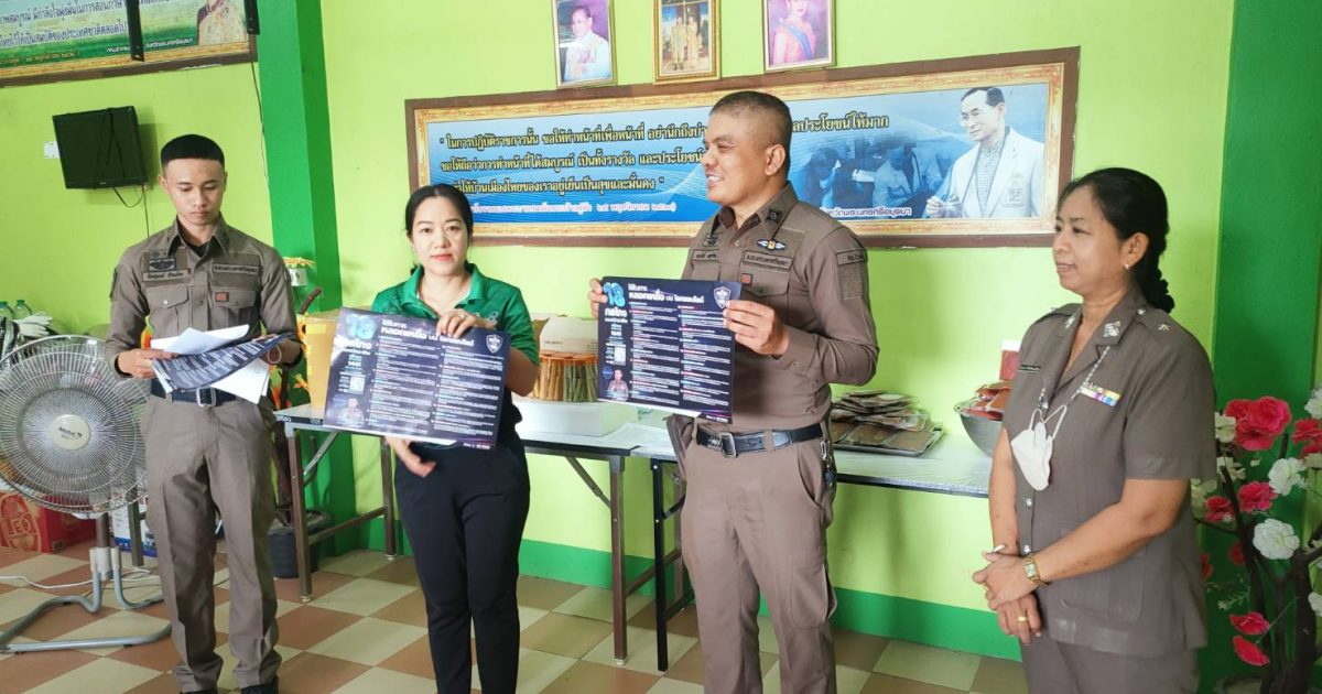 วันนี้ 21 มิ.ย. 2566 ทีมวิทยากร นำโดย ร.ต.ต.หญิง พเยาว์ ศิโรรัตนะโยธิน ด.ต.ธนศักดิ์ เฉลยศิลป์ ส.ต.ต.ชิษณุพงษ์ เรือนน้อย (ครู ข.) บรรยายให้ความรู้กับประชาชน เกี่ยวกับคดีอาชญากรรมทางเทคโนโลยี การถูกหลอกลวงในรูปแบบต่าง ๆ เพื่อให้ประชาชนรับรู้ข่าวสารเตือนภัยออนไลน์ เพื่อไม่ให้ตกเป็นเหยื่อของมิจฉาชีพ โดยการแจกแผ่นพับ 18 กลโกงของมิจฉาชีพ และเอกสารการหลอกลวงที่เกิดขึ้นในรูปแบบต่าง ๆ