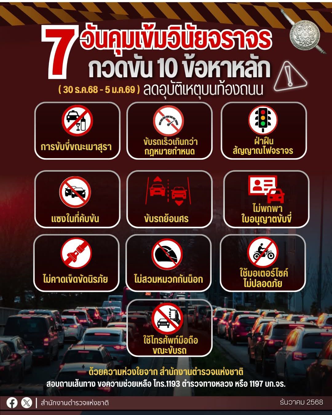 7 วันคุมเข้ม ลดอุบัติเหตุ “ปีใหม่ 2569”
