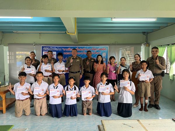 วันที่ 21 ก.พ. 67 เวลา 09.00 น.พ.ต.อ.ณัฏฐ์เดชา ฐานิสภัทราพงศ์ ผกก.สภ.โรงช้างพ.ต.ท.ภูวดล ศูนย์แสง รองผกก.ป.ฯ ,พ.ต.ท.ประยูร เข็มณรงค์ สวป.สภ.โรงช้าง พร้อมด้วยกำลังสายตรวจ ร่วมพิธีปิดโครงการ“การศึกษาเพื่อต่อต้านการใช้ยาเสพติดและความรุนแรงในเด็กนักเรียน ณ โรงเรียนวัดโพธิ์