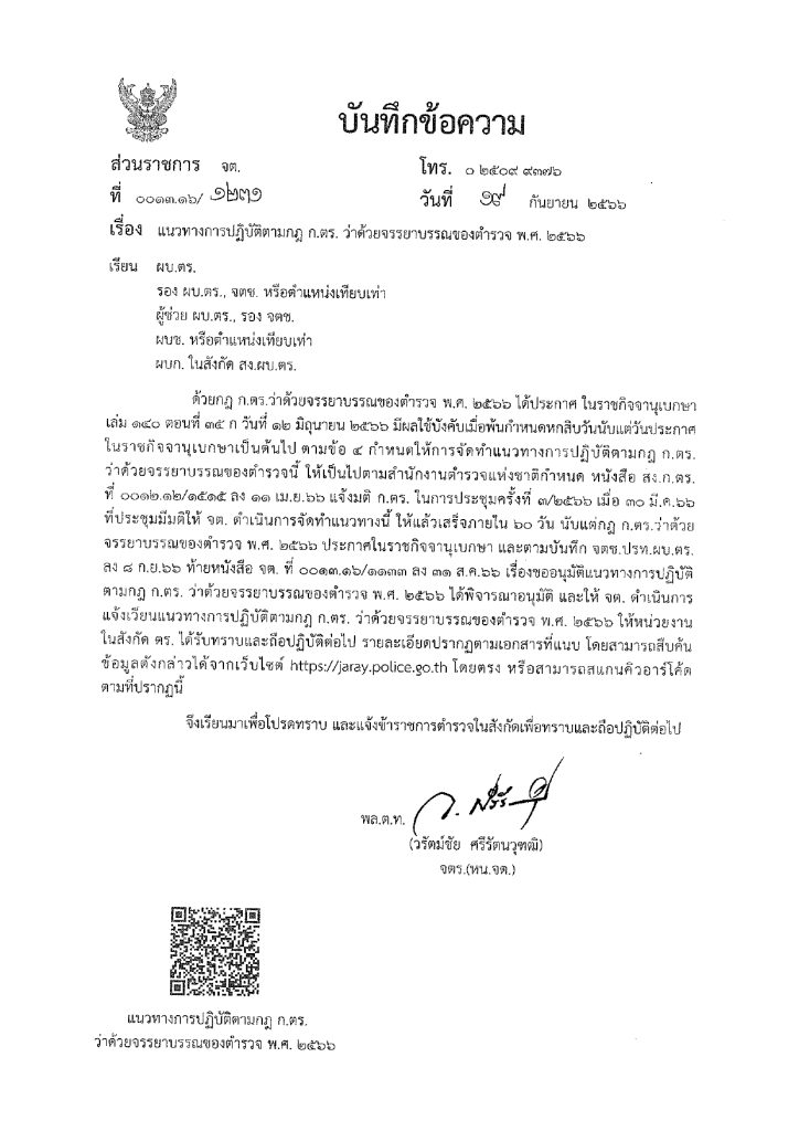 แนวทางการปฏิบัติตามกฎ ก.ตร.ว่าด้วยจรรยาบรรณของตำรวจ พ.ศ.2566