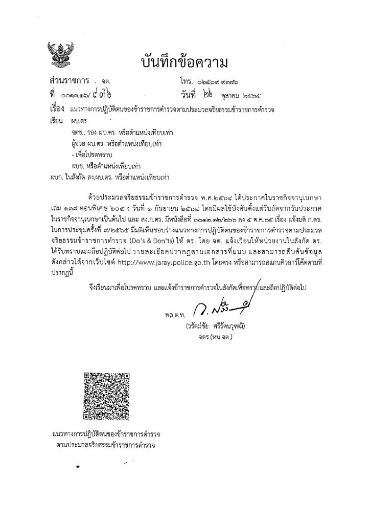 ดาวน์โหลดแนวทางการปฏิบัติตนของข้าราชการตำรวจ