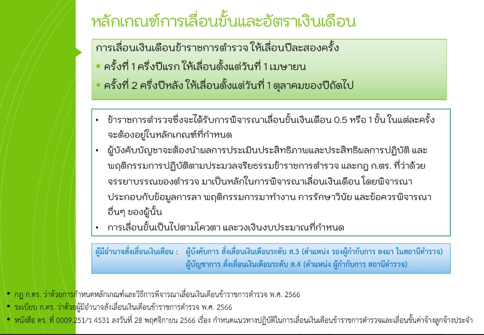 - แนวทางปฏิบัติการเลื่อนเงินเดือนข้าราชการตำรวจและเลื่อนขั้นค่าจ้างลูกจ้างประจำ ตามหนังสือ ตร.ที่ 0009.251/ว 4531 ลง 28 พ.ย.66