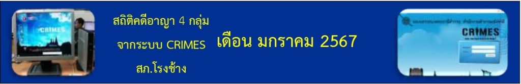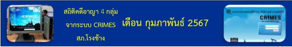 คลิ๊กดูที่นี่ - ข้อมูลผลการดำเนินงานในเชิงสถิติด้านคดีอาญา 4 กลุ่มตามระบบ CRIMES เดือน ก.พ.67 ในรูปแบบไฟล์ Excel