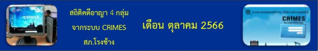 คลิ๊กดูที่นี่ - ข้อมูลผลการดำเนินงานในเชิงสถิติด้านคดีอาญา 4 กลุ่มตามระบบ CRIMES เดือน ต.ค.66 ในรูปแบบไฟล์ Excel