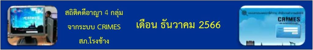 คลิ๊กดูที่นี่ - ข้อมูลผลการดำเนินงานในเชิงสถิติด้านคดีอาญา 4 กลุ่มตามระบบ CRIMES เดือน ธ.ค.66 ในรูปแบบไฟล์ Excel
