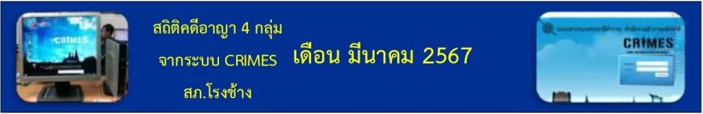 คลิ๊กดูที่นี่ - ข้อมูลผลการดำเนินงานในเชิงสถิติด้านคดีอาญา 4 กลุ่มตามระบบ CRIMES เดือน มี.ค.67 ในรูปแบบไฟล์ Excel