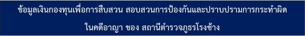 สถานีตำรวจภูธรโรงช้าง ได้แสดงข้อมูลเงินกองทุนเพื่อการสืบสวนสอบสวนการป้องกันและปราบปรามการกระทำผิดในคดีอาญาที่สถานีตำรวจภูธรโรงช้าง ได้รับการจัดสรรและ การใช้จ่ายเงินกองทุนฯ ในรอบ 6 เดือนเเรกหรือ 2 ไตรมาส ของปีงบประมาณ 2567 แต่เนื่องด้วย เงินกองทุนฯได้รับจัดสรรเป็นปีปฏิทินจึงสามารถเผยเเพร่ได้ ในรอบ 3 เดือน มีดังรายละเอียดล่างนี้
